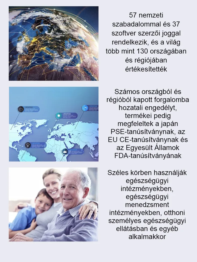 Az Egészségügyi Világszervezet 2022-es jelentése szerint a szív- és érrendszeri betegségek megelőzték a rákot, mint a betegségek előfordulásának vezető oka, és az érintett lakosság egyre fiatalabb. Válaszul cégünk piacra dobott egy non-invazív vércukorszintmérőt a szív- és érrendszeri betegségek, például a hiperglikémia, a magas vérnyomás és a hiperlipidémia megelőzésére és kezelésére, valamint a cukorbetegek vércukorszintjének szabályozására. Teljes ellátási lánccal rendelkezünk, és termékeinket világszerte értékesítjük.